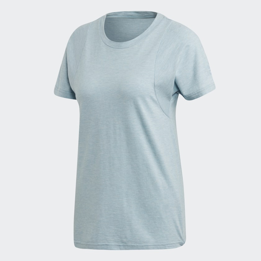 Not your basic basic. This t-shirt features cut lines inspired by a sporty racer-back pattern. A pearlised adidas Badge of Sport on the sleeve gives it a touch of authenticity. The tee is built with soft cotton-blend jersey for everyday comfort.